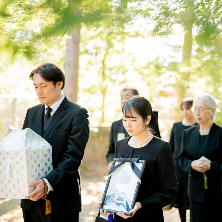 家族葬は、遺族や親しい親族のみで執り行う小規模で心のこもったプランです。通夜・葬儀・火葬を行いながらも、参列者を限ることで費用を抑えられる点が特長です。また、弔問客への対応や接待の負担が少なく、ご遺族が故人との時間に専念できるのも魅力です。近年、多くの方に選ばれている形式です。